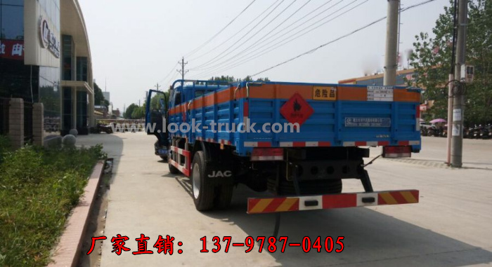 二、江淮平板式气瓶运输车车身颜色(蓝色+警示标识) ,液化气瓶运输车多方位展示图: